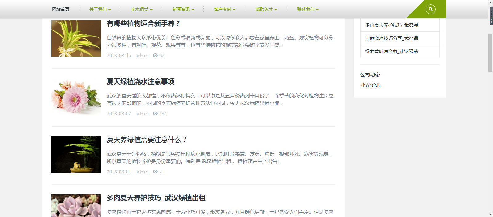以我們的客戶武漢遠之潤園藝舉例子來說,這位客戶的網站也是在我們這里做的,首頁的大圖、產品圖片、案例圖片、新聞資訊的圖片和封面等等都是可以更換的。